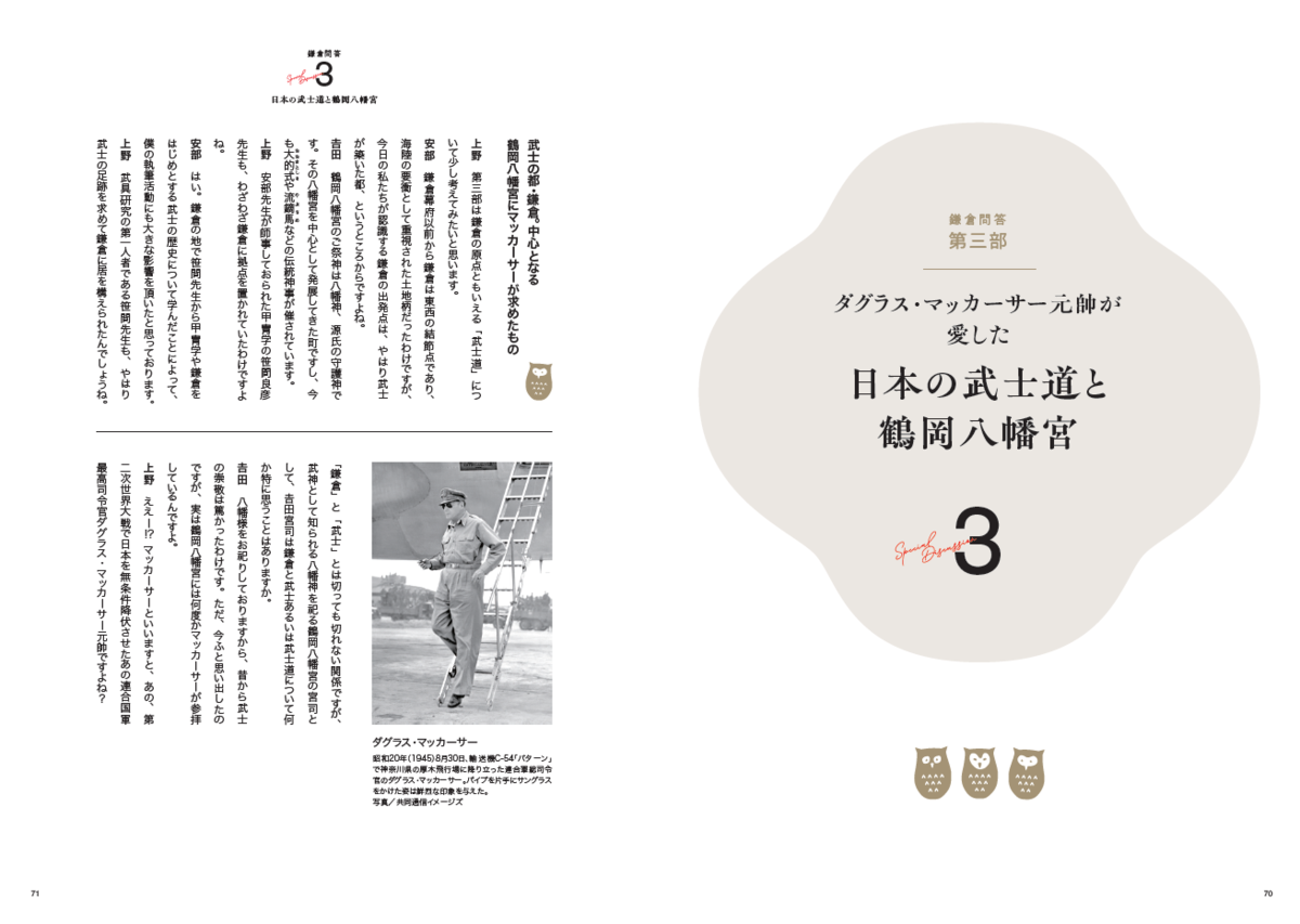 鎌倉の歴史・文化を考察する鶴岡八幡宮の情報誌「悠久」がMOOK本になって新創刊。鶴岡八幡宮監修の全く新しい「鎌倉ガイドブック」(小学館刊・宮司𠮷田茂穂著)として誕生しました。鶴岡八幡宮監修・鶴岡八幡宮宮司著だからこそお伝えできる、ここにしかない情報満載です。鎌倉をよく知っている方にも、はじめて鎌倉を訪れる方にもおすすめの鎌倉案内本です。(大型本・128頁 オールカラー) 書籍「鶴岡八幡宮宮司の鎌倉案内」~後世に伝えたい歴史と文化~ ツイートする シェアする 初穂料: 1,650円(税込み) 会員価格 (税込み) 通常価格 (税込み) 在庫 商品コード B-001 JANコード 数量 1 2 3 4 5 6 7 8 9 10 カートに入れる カテゴリー 書籍 「鶴岡八幡宮宮司の鎌倉案内」~後世に伝えたい歴史と文化~鶴岡八幡宮宮司 𠮷田茂穂著 鶴岡八幡宮監修小学館発行 大型本 128頁